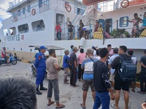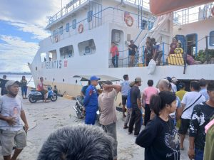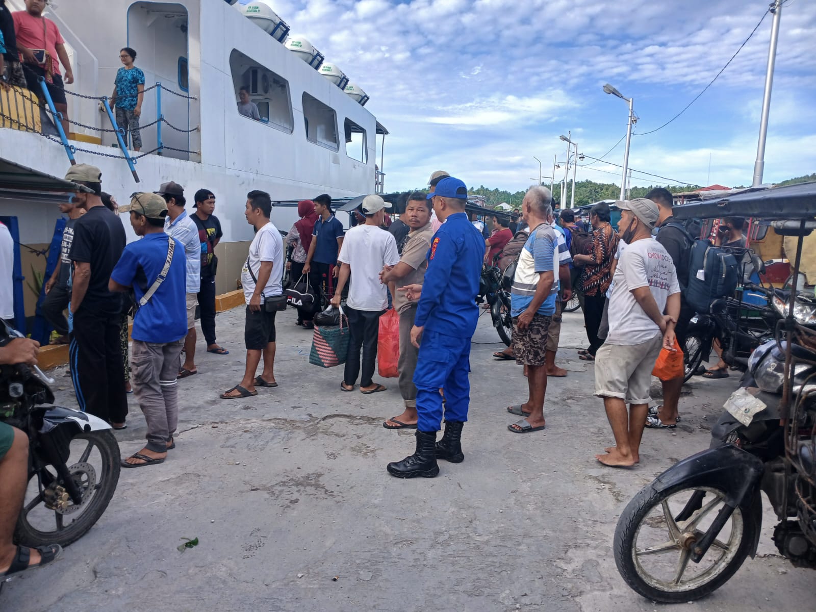 Personil Satpolairud Nias Selatan Melaksanakan sambang dan pengamanan kapal yang akan tolak sandar di pelabuhan Pulau Tello menuju pelabuhan Teluk Dalam